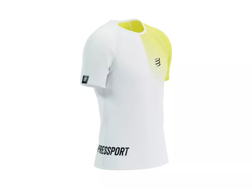 Compressport Training SS Tshirt Homme (SwimBikeRun 2023) – White / Evening Primrose